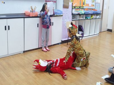 On Friday, Grade 2 from Pudong campus held the Idioms Exhibition Match finals in the 2(1) classroom. During the past two weeks, our students have enjoyed the Idioms Exhibition Match, and at this point there are six teams that have made it to the finals. The six teams prepared stage props by themselves, and all of them had excellent performances in Friday’s Chinese class. Through the Idioms Exhibition Match, our students have become much more interested in studying Chinese.